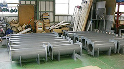 当社では設備工事に必要なパーツ加工(必要であれば設計からおこないます)、機械の据付、機械設備周辺工事までを一貫して行います。パーツは自社工場にて加工しており、各種素材にも対応が可能です。通常であれば設備工事、電気工事、配管工事など各種工事専門の会社が別々に担当するところ、当社は1社で完結させることができるという点は、工事全体のスケジュールを大きく短縮でき、ひいてはコストダウンにも繋がる当社の大きな特長のひとつです。また、他社で施工した現場の修理、改修もご相談いただけます。