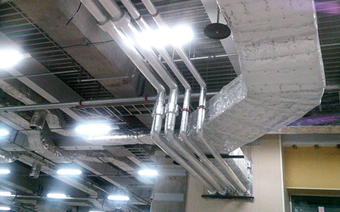 建物内の空気環境を良好に保ち、衛生的な水を利用できる仕組みづくりが空調衛生工事です。また、建物内部だけでなく環境にやさしく、いかに有害物質の排出を抑えるかも空調衛生工事の大きな課題です。当社ではビルや工場内部の給排気設備、クリーンルームや病院、研究所などの環境構築をおこなっています。